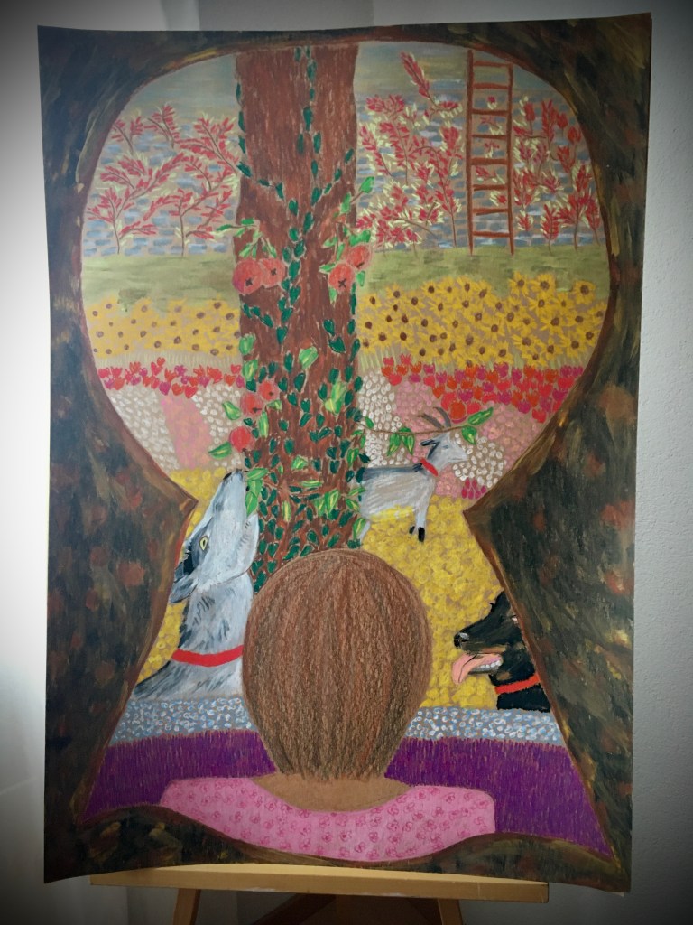 Im Herbst 2020 habe ich meinen ganz eigenen Malstil (naive Malerei) entdeckt. Ich male Sujets aus meinen verschiedenen Imaginationen und reichere sie mit Ressourcen an.